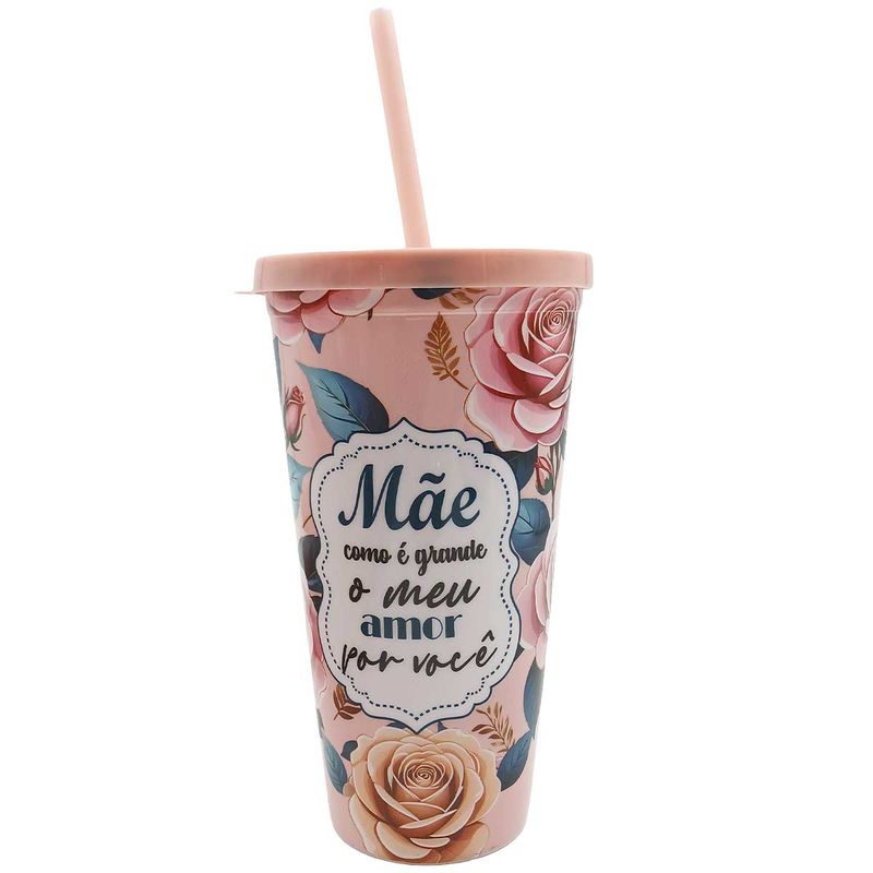Copo Mãe Floral C/ Canudo 600ml em Plástico Interponte