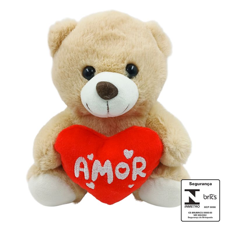 Urso de Pelúcia Coração Amor 18cm em Poliéster Fizzy