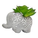 Vaso Elefante C/ Planta Artificial 8x6cm Em Cimento Livon