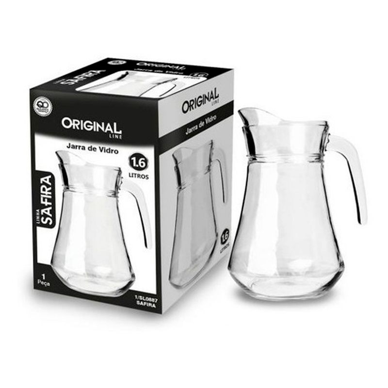 Jarra C/ Tampa -Safira Capacidade: 1600ml Composição: Vidro Original Line Código de Barras: 7898745134332 Peso: 0,749Kg Ref.: GL7550