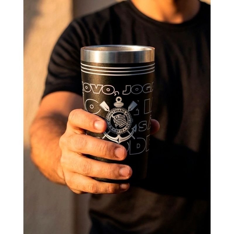 Copo Térmico C/ Tampa Corinthians 550ml em Aço Inox Allmix
