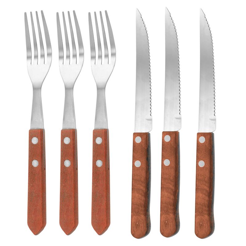Contém: 12 Peças - 6 Garfos para mesa e 6 Facas para churrasco