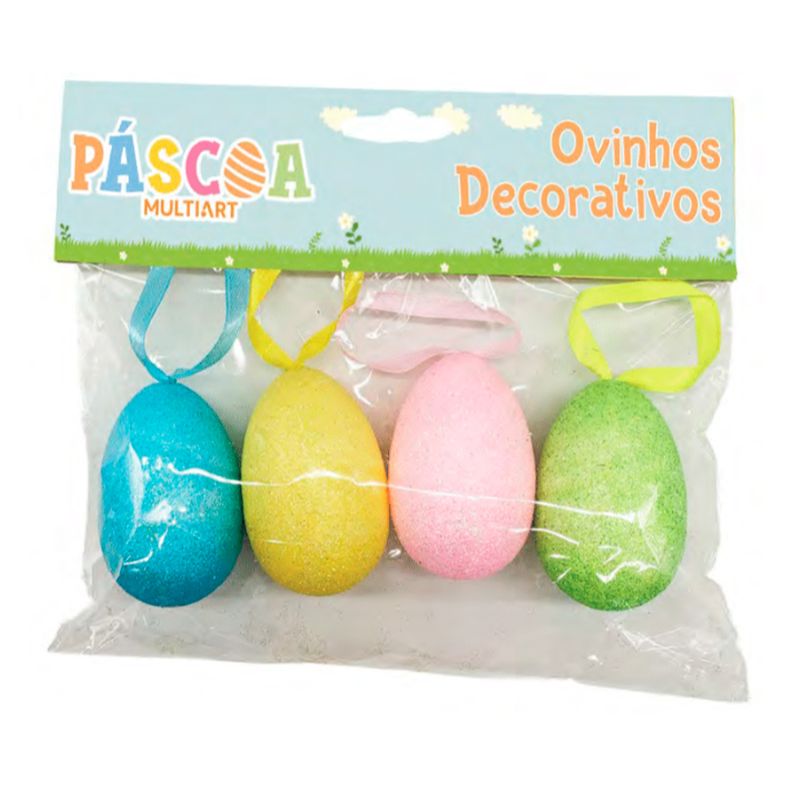 Ovos de Páscoa Decorativo - Com Glitter - Contém: 4 Peças Medidas: 4X6cm Composição: Isopor e Poliéster Multiart Código de Barras: 7899183976270 Peso: 0,50kg Ref: PAS0051