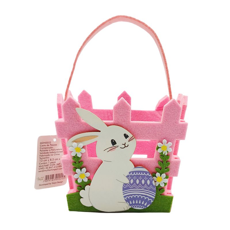 Cesto de Páscoa -Decorativo Medidas: 13x12x10cm Composição: Poliéster e Madeira Multiart Código de Barras: 7899183990245 Peso: 0,034Kg Ref.: MDN0052