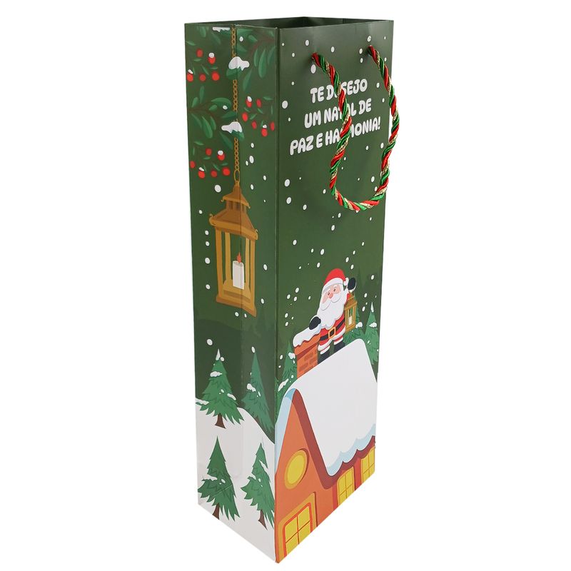 Sacola P/ Vinho Natal 12x36cm em Papel Tokyo Design