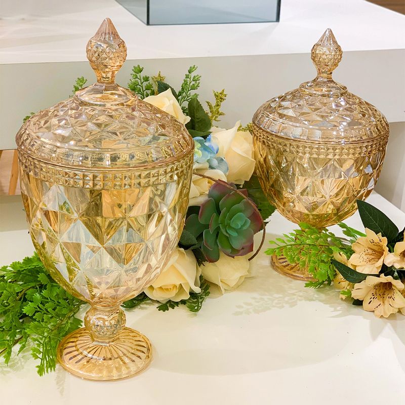 Bomboniere Potiche 15X28Cm Com Pe Diamond Ambar Cristal Lyor