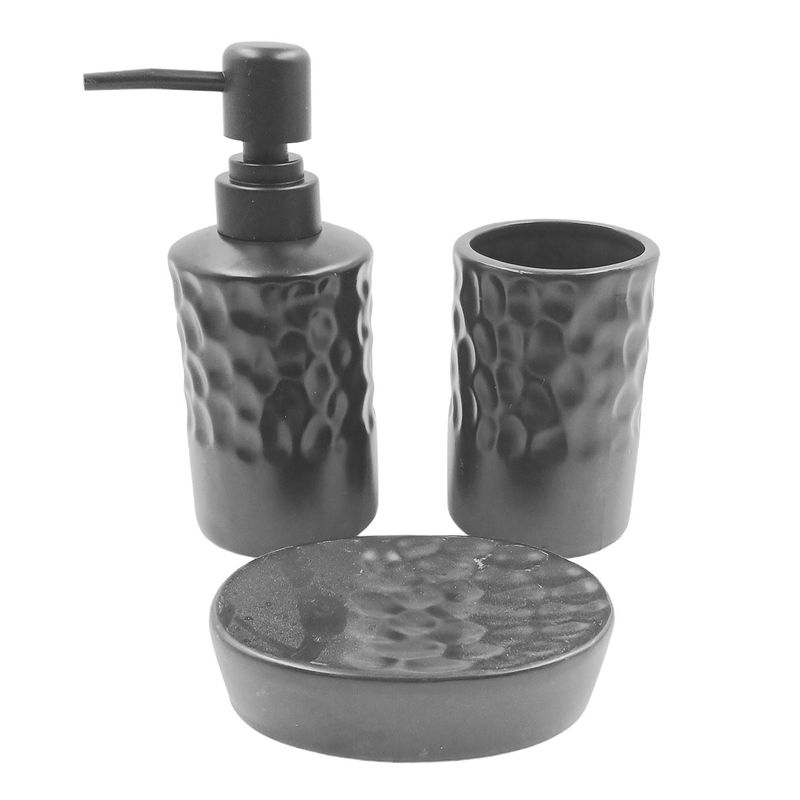 Contem: 3 peças (saboneteira, Copo multiuso, Porta sabonete liquido)