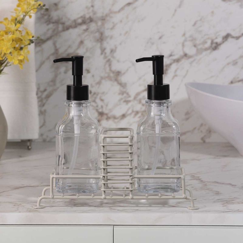 Porta Sabonete Liquido C/ Suporte Duplo 3 Peças em Vidro Lyor
