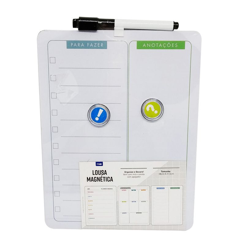 Lousa Magnética Organize e Decore! - Vem C/ Imã e Caneta ( C/ Apagador). Medida: 28x21,5cm FWB Código de Barras: 7908148523388 Peso: 0,265 Kg Ref: 2338