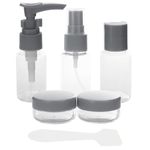 Kit Viagem -C/ Estojo Contém: 7 Peças - 1 Estojo, 1 Frasco Spray (30ml), 1 Frasco Pump (30ml), 1 Frasco Disk Top (30ml), 2 Potes (10g) e 1 Espátula Composição: Plástico Y888 Código de Barras: 7908153054235 Peso: 0,062Kg Ref.: 8906