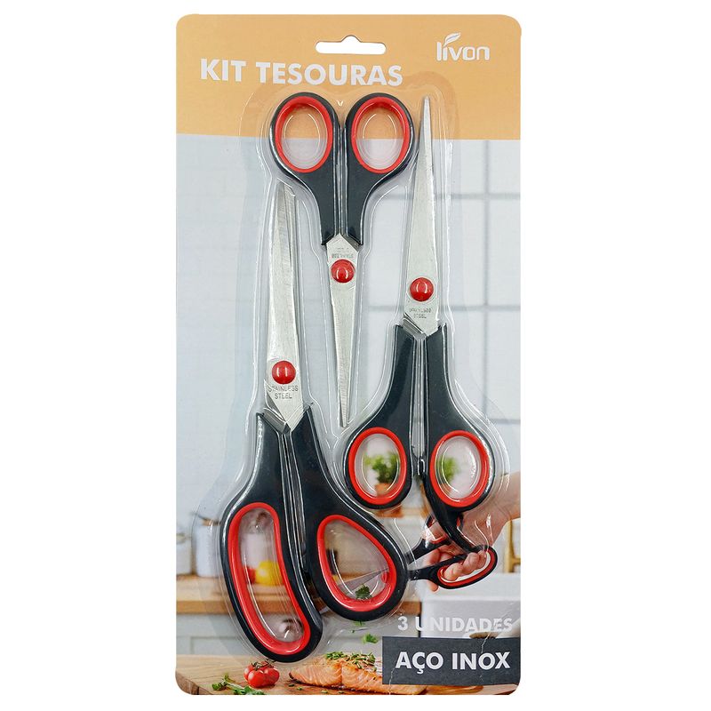 Kit Tesoura Multiuso 3 Peças 19cm em Aço Inox Livon