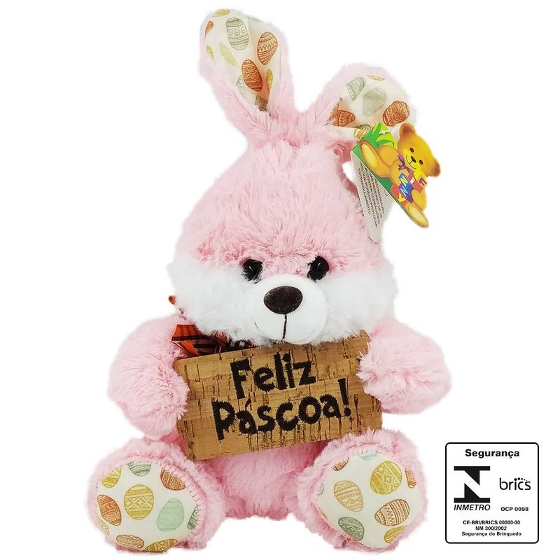 Coelho C/ Placa Feliz Páscoa 20cm em Pelúcia Fizzy