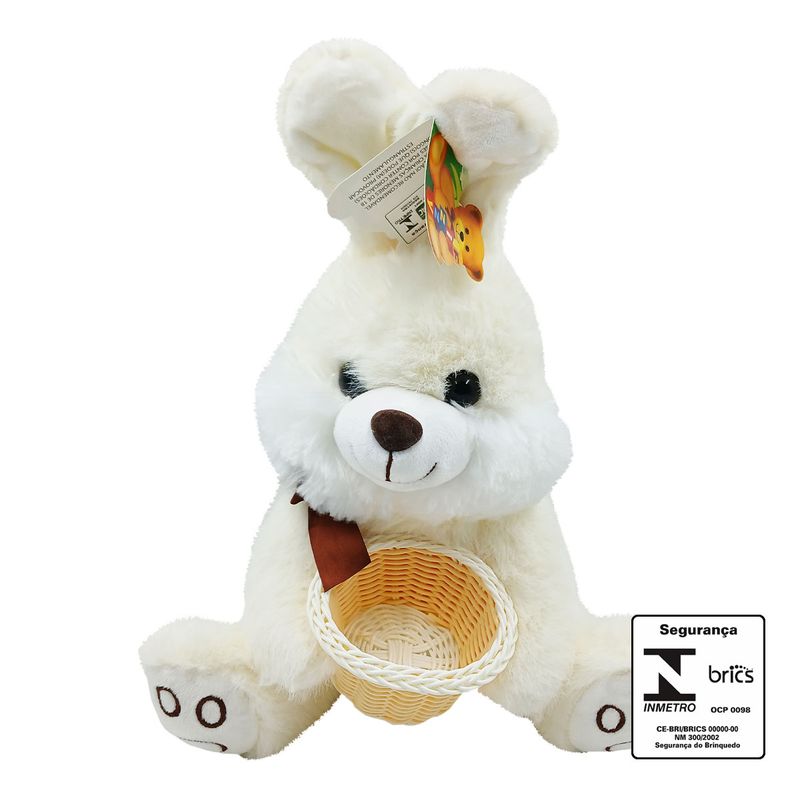 Coelho De Pelúcia C/ Cesta 35cm em Poliéster Fizzy
