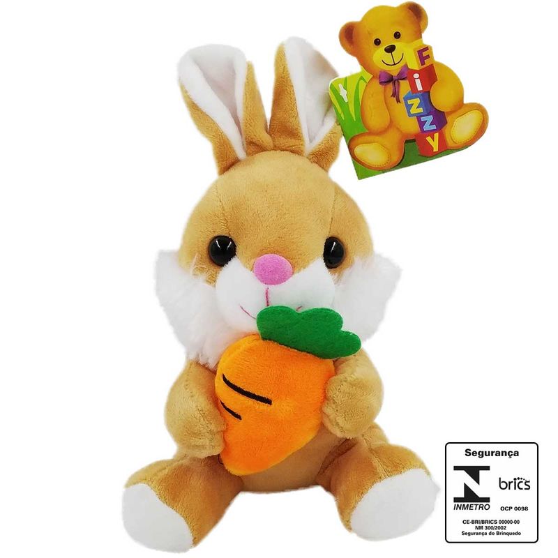 Coelho de Pelúcia C/ Cenoura 14cm em Poliéster Fizzy