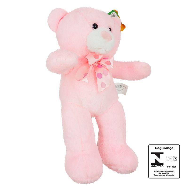 Urso De Pelúcia C/ Laço 25cm em Poliéster Fizzy