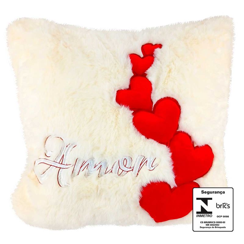 Almofada de Pelúcia -C/ Corações -Decorativo Medidas: 41cm Composição: Poliéster Fizzy Código de Barras: 7908204407867 Peso: 0,352Kg Ref.: FE7390