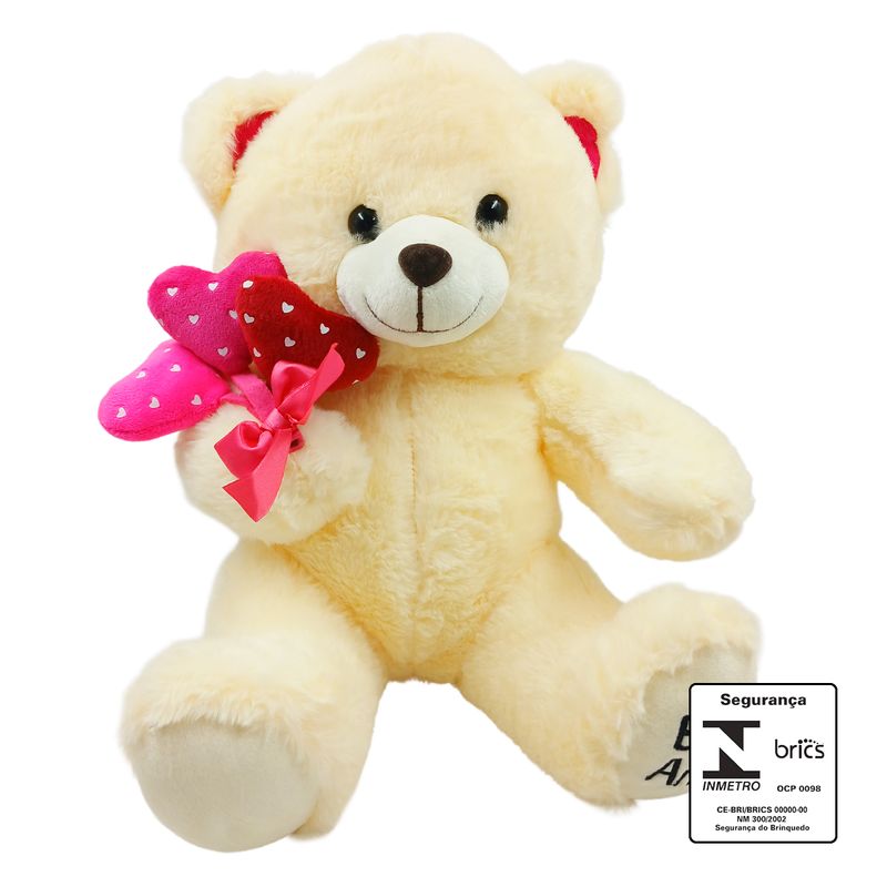 Urso de Pelúcia Balões Coração 36cm em Poliéster Fizzy