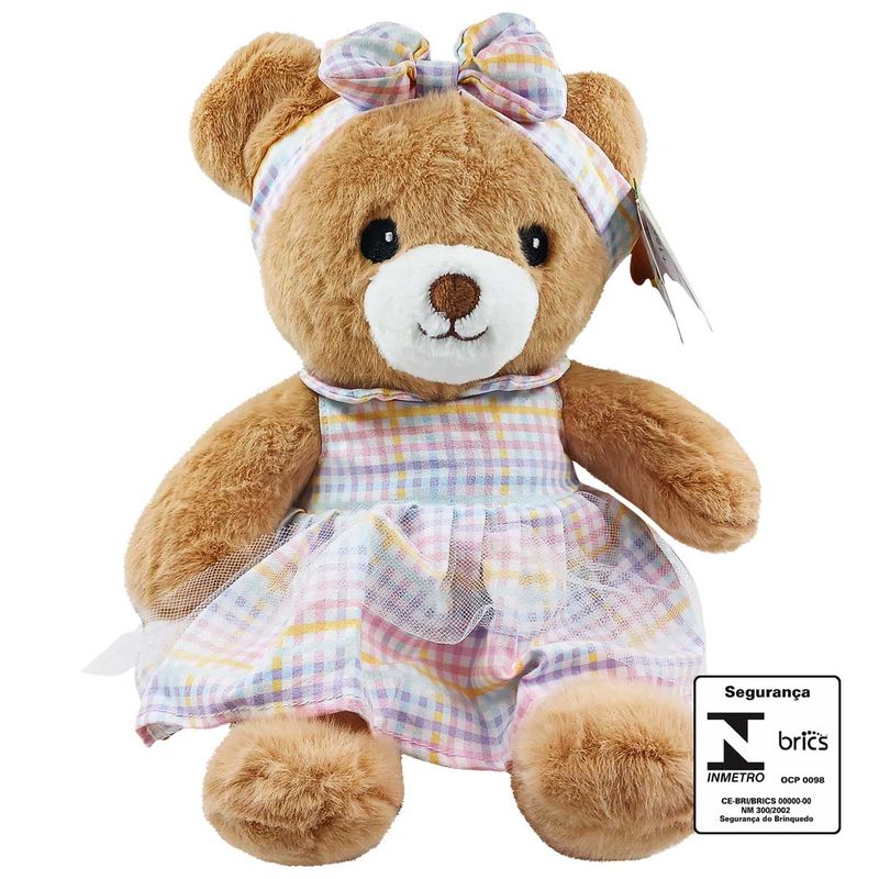 Urso de Pelúcia C/ Tiara 22cm em Poliéster Fizzy