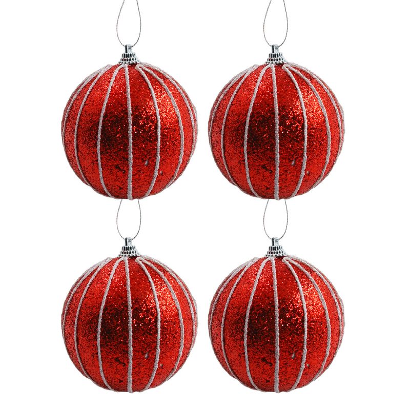 Jogo de Bolas Natalinas Glitter 4 Peças 8cm em Plástico Rio Master