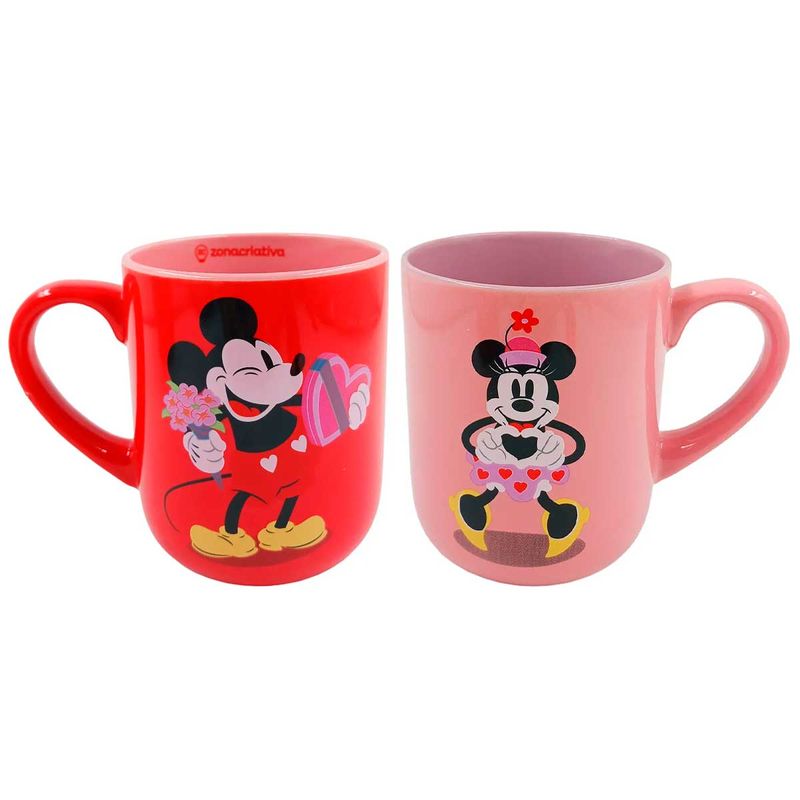Jogo de Caneca Mickey e Minnie Namorados 400ml 2 Peças em Cerâmica Zona Criativa