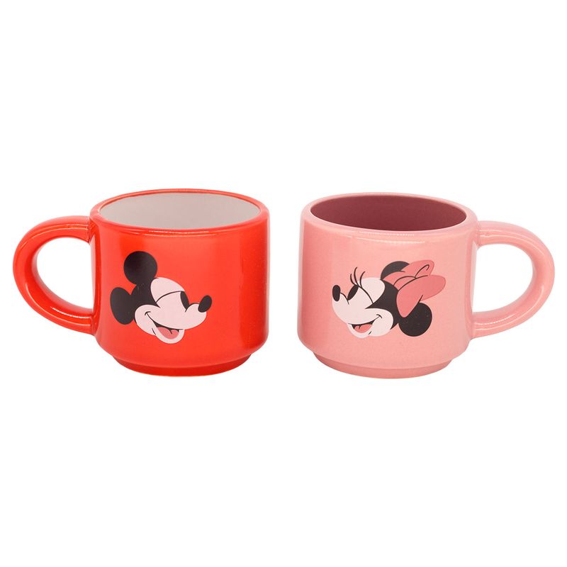Jogo de Caneca Mickey e Minnie 50ml 4 Peças em Cerâmica Zona Criativa