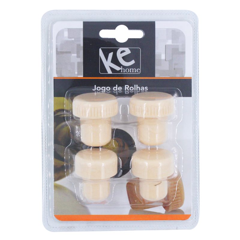 Jogo de Rolhas P/ Garrafas 4 Peças em Plástico Kehome