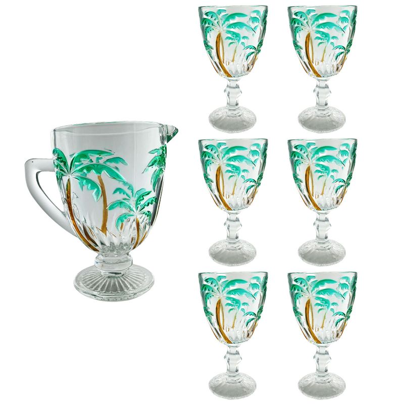 Jogo de Taças e Jarra Palm Tree 7 Peçasem Vidro Kehome