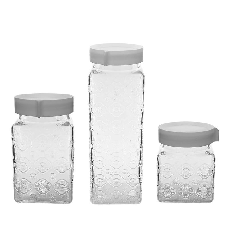 CozinhaPotes e Porta TemperosPotes e Porta MantimentosJogo de Potes Floral 3 Peças em Vidro Fu Xing