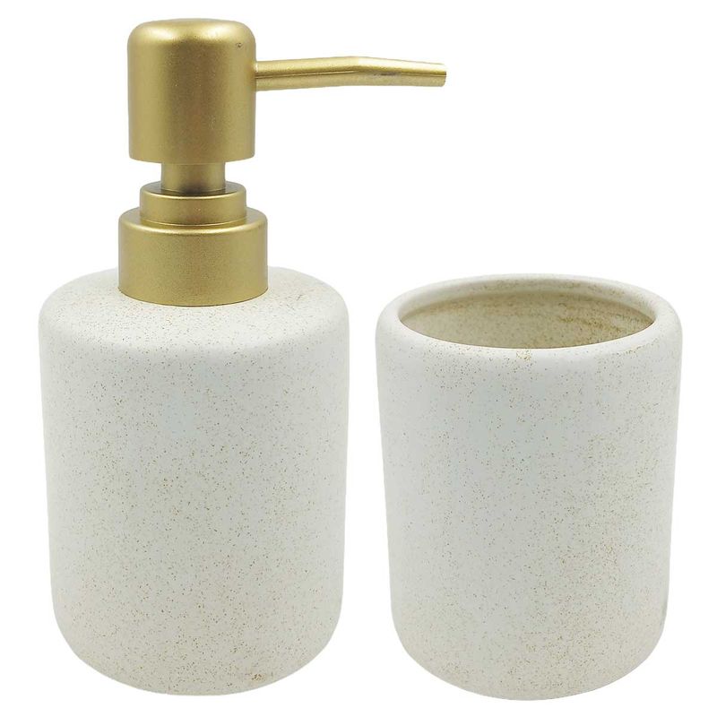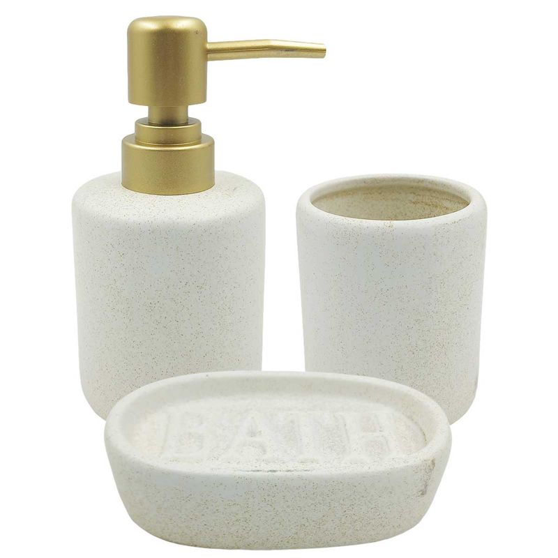 Contem: 3 peças (saboneteira, Copo multiuso, Porta sabonete liquido)
