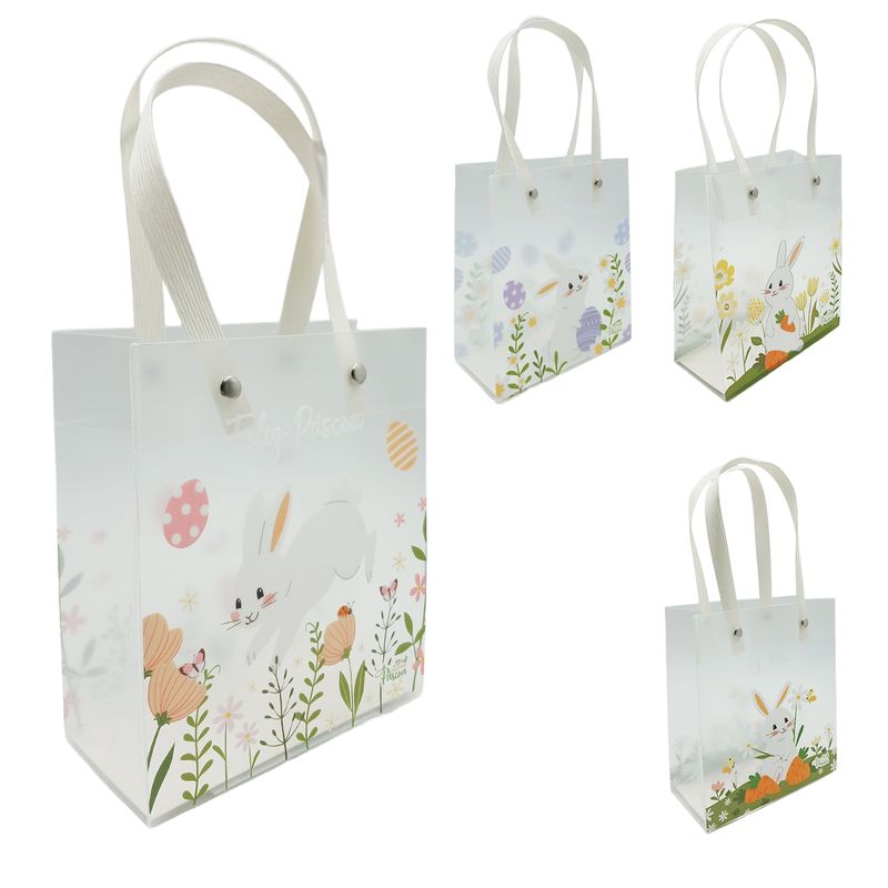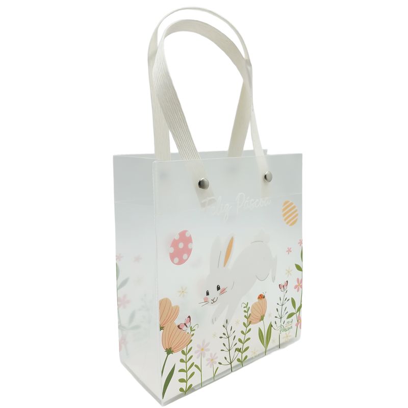 Sacola P/ Presente Coelho da Páscoa Transparente 13x15cm em Plástico Multiart