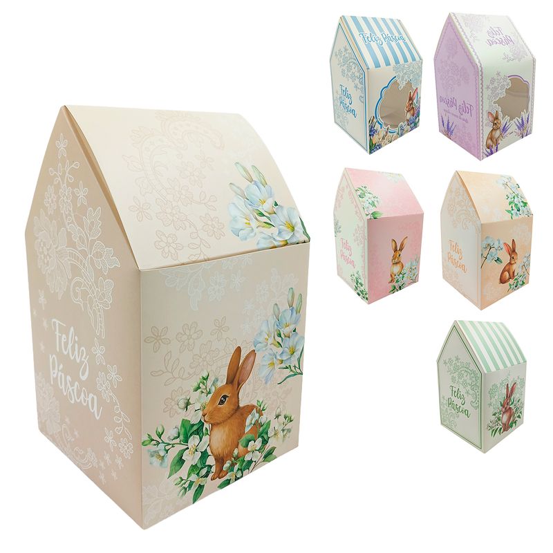Caixinha Para Doces De Pascoa 12x12cm em Papel Multiart