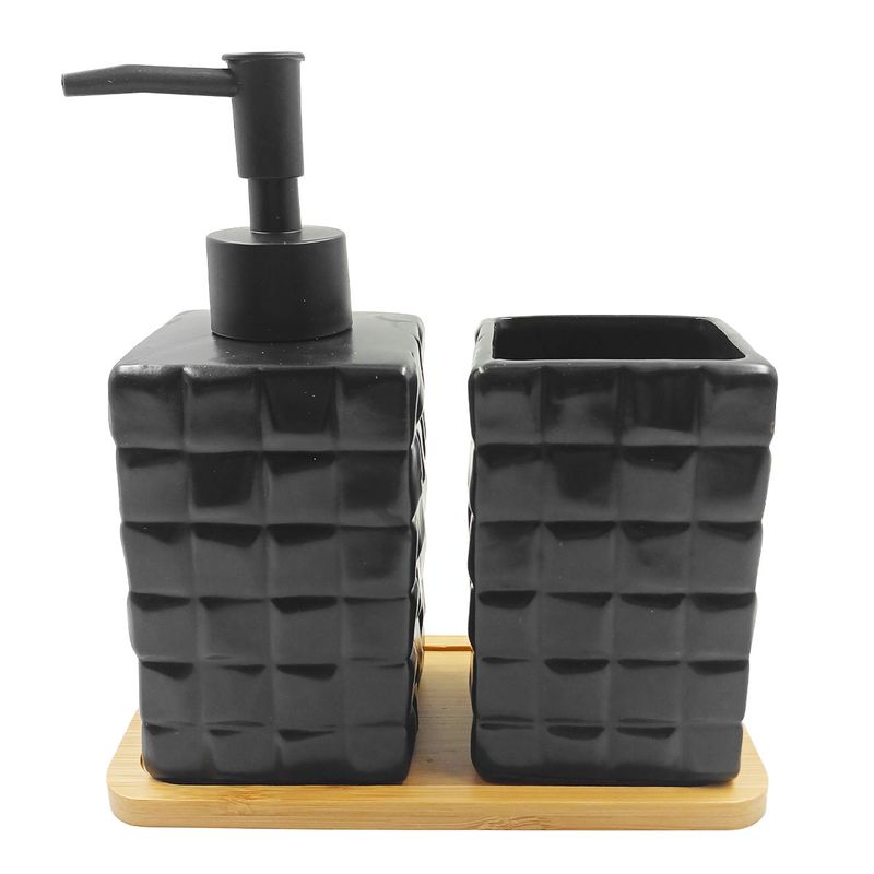 Medidas: Porta Sabonete Líquido - 7x7x17,5cm; Porta Escova - 7x7x11cm; Bandeja - 9x17cm