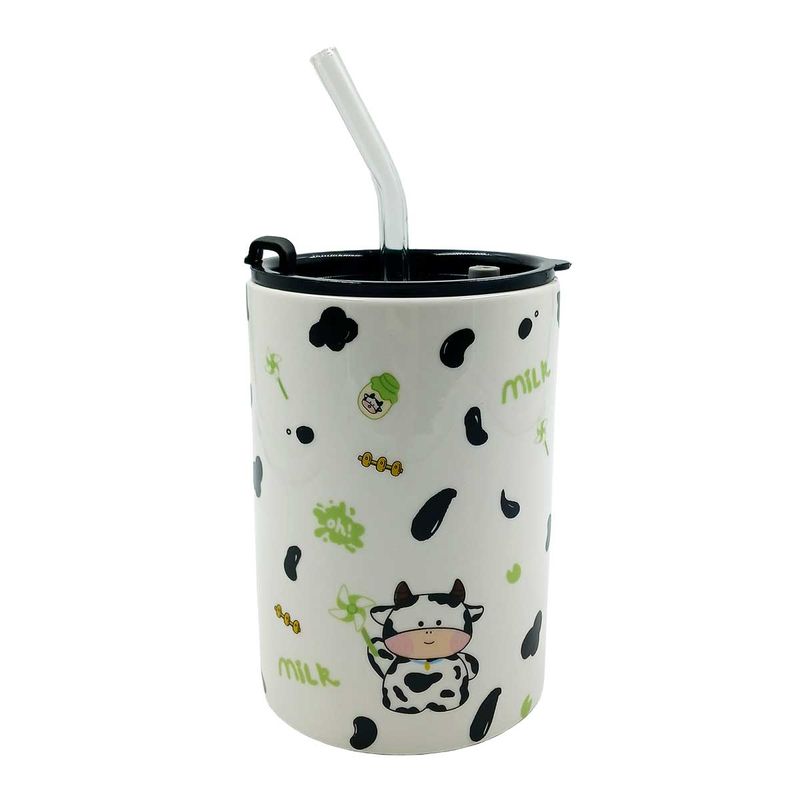 Copo C/ Canudo Vaquinha 500ml em Cerâmica Lila Cosméticos