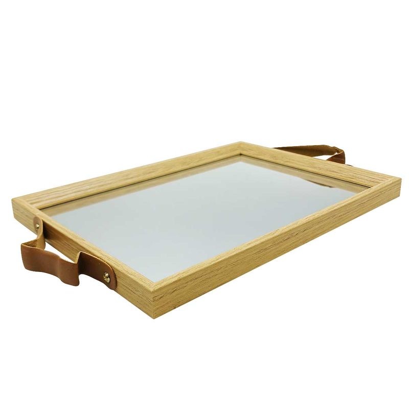 Bandeja Espelhada Retangular 30x22cm em Vidro e MDF Freecom