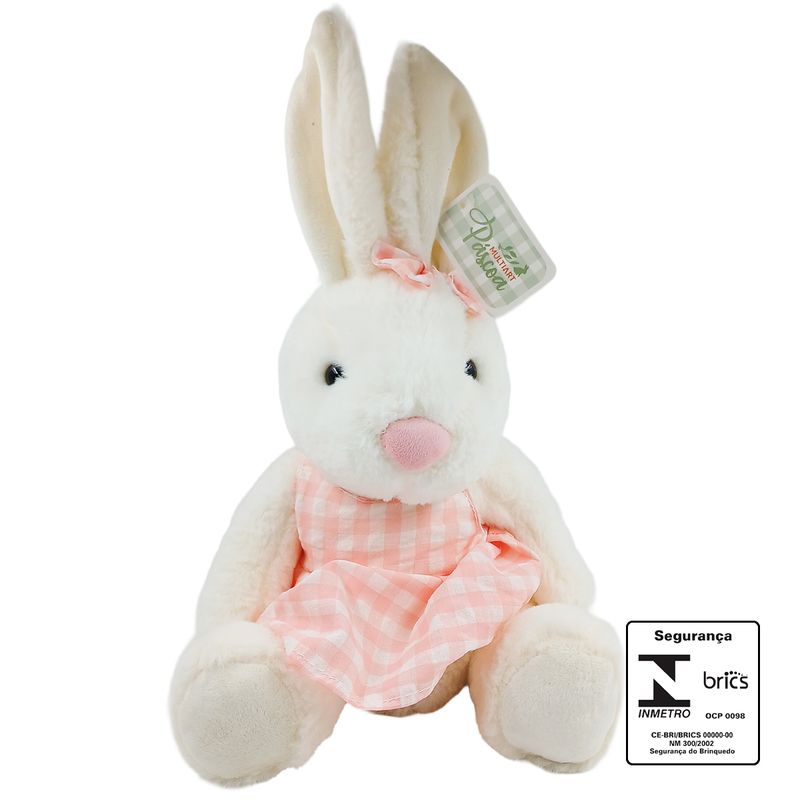 Coelho De Pelúcia com Roupa Xadrez 38cm Poliéster Multiart